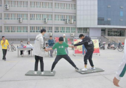 迈出青春步伐,继承五四精神。热身完毕后,全体队员在各自队长的带领下举起团旗,向着最后的终点奋力前行。途中每一队需要奔向固定的活动点完成小比赛以获得卡片拼图,取得胜利。