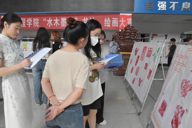 于工科实训楼大厅开展了“水木墨影”书法、绘画、摄影、手工作品展览活动。
