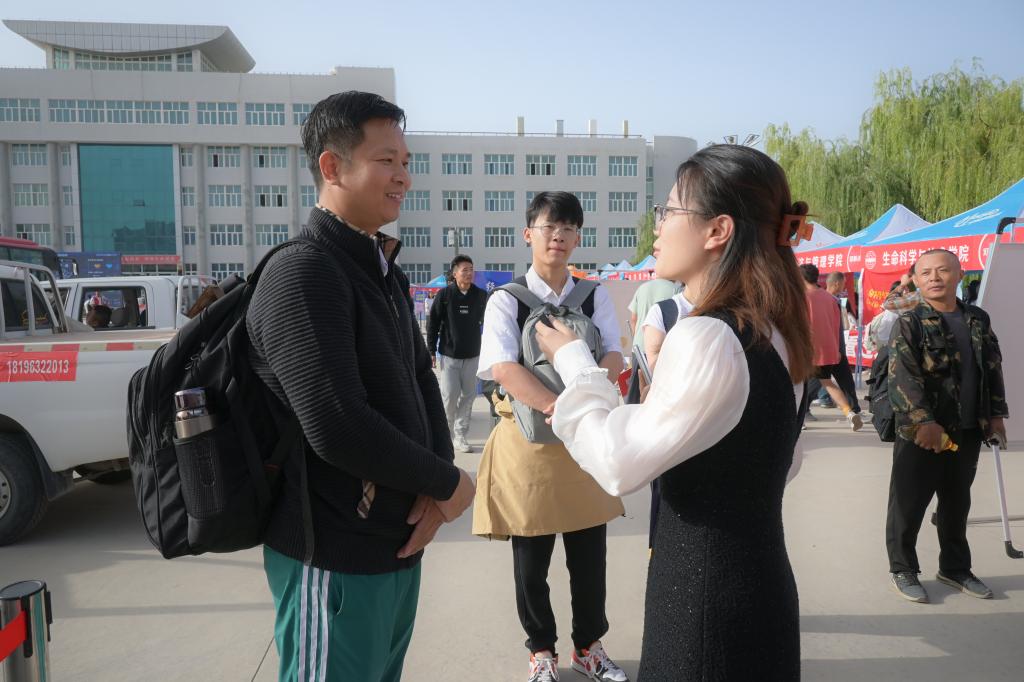 我觉得学校非常好,从今天的迎新活动就可以看出学校和学院的热情,我希望他可以在这里学有所获,学有所成,未来扎根南疆,将所学付诸实践。