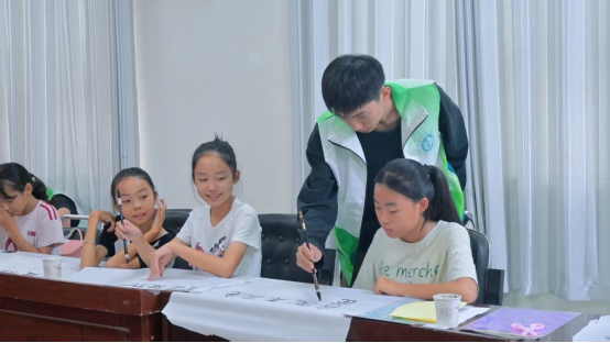 连续多年组建暑期实践队,聚焦青少年文化启蒙。“我们想撕碎‘非遗 = 阳春白雪’的标签,用童稚能懂的语言,讲好文化传承的故事。”实践队负责人庞子健道出初心。此次活动创新设计“双轨教学”:晨曦中的书法课堂,融笔法研习与诗词意境于一体;午后的剪纸工坊,让动手实践与创意奇思碰撞火花。