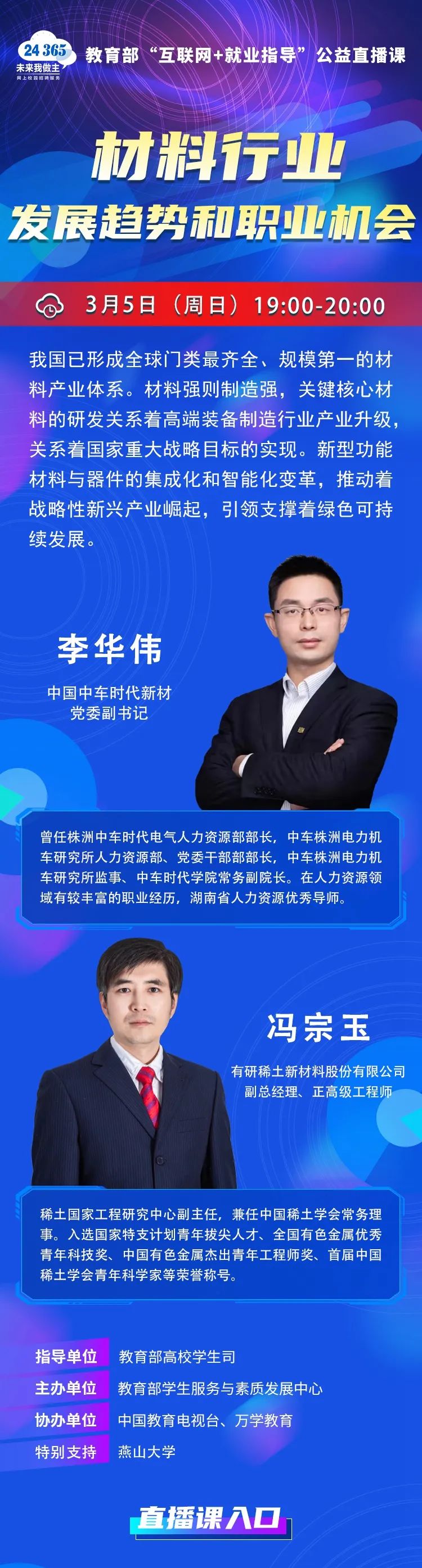 课程预告 教育部24365就业公益直播课:材料行业发展趋势和职业机会