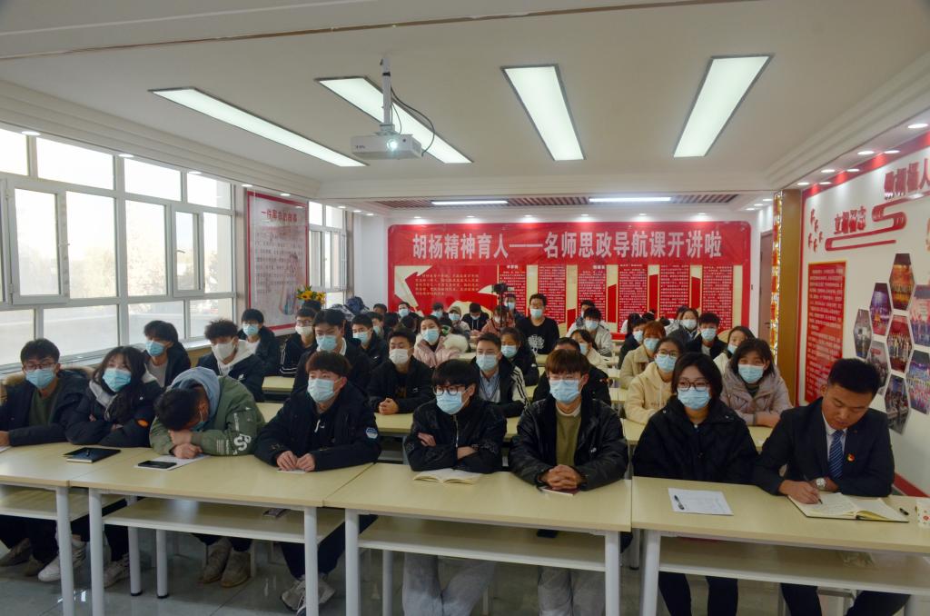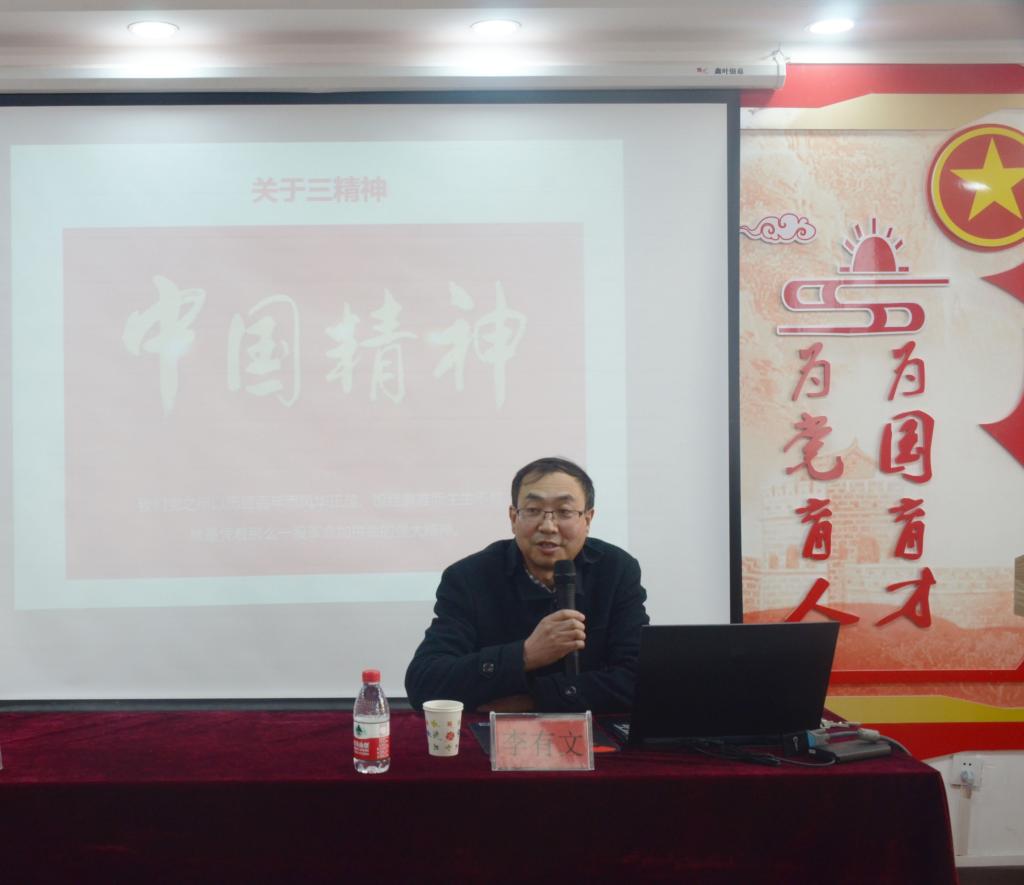 李有文结合中国共产党百年奋斗的光辉历程和历史贡献,讲述了伟大的中国精神、建党精神,并结合自己在求学路上的磨难艰辛和在校28载工作经历,生动形象地诠释了胡杨精神。为师生上了一节生动的思政课。