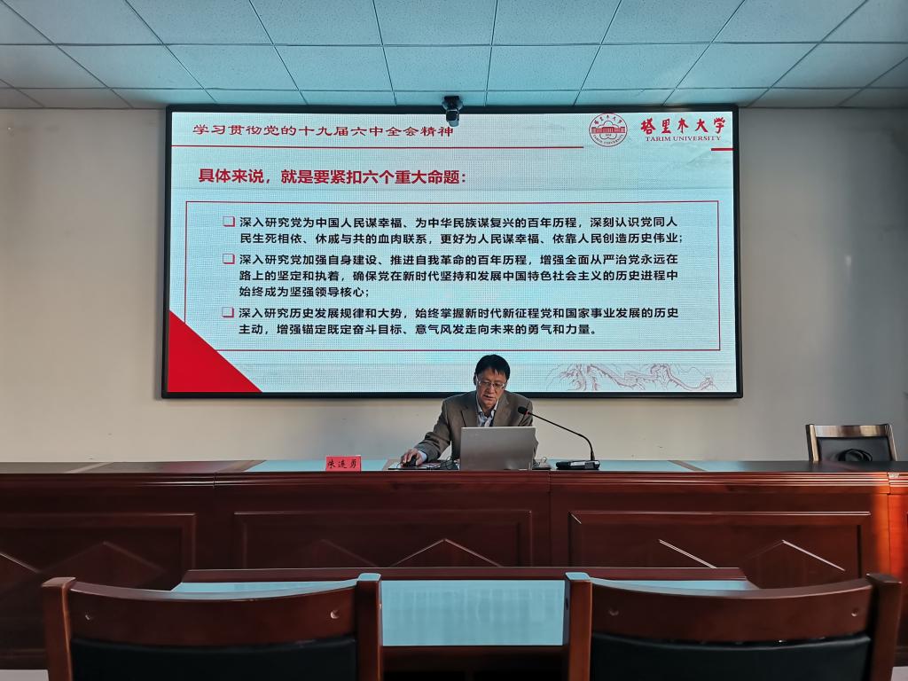 朱连勇从十九届六中全会主要议程及重大意义、《中共中央关于党的百年奋斗重大成就和历史经验的决议》、《历史决议》的重大创新与亮点、全面学习贯彻十九届六中全会精神4个方面全面系统的讲述了党的十九届六中全会的重要内涵和会议精神,指导我们在党中央的号召下,树立正确的历史观,在比较中深入学习领会全会精神。在全面建设社会主义现代化国家新征程上,高举习近平新时代中国特色社会主义思想伟大旗帜,不忘初心,牢记使命,增强“四个意识”,坚定“四个自信”,坚决做到“两个维护”,为实现中华民族伟大复兴而奋斗!