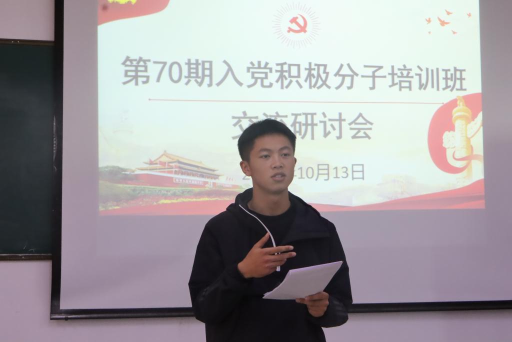 10月13日下午4: 00,学院党校在工科实训楼多媒体教室召开了第70期入党积极分子培训研讨交流会,研讨会由学院党建办公室副主任党新鑫主持。