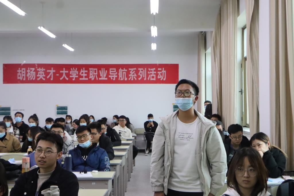 会上,辛庆午对历年毕业生就业情况进行了全面分析,指出2022届毕业生就业形势依旧不容乐观,同学们要做好职业生涯规划,明确求职动机和目标,准备好求职材料,明确求职岗位。辛庆午以两位优秀同学的简历为范本,详细地告诉同学们应该如何制作简历。辛庆午更是结合自身所担任的职位,从企业性质、企业理念、企业用人观、企业经营范围、企业在行业中的发展等多个角度,详细地告诉同学们应该如何结合自身发展来选择就业单位。