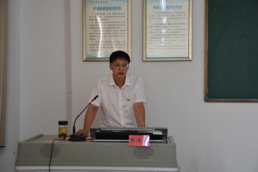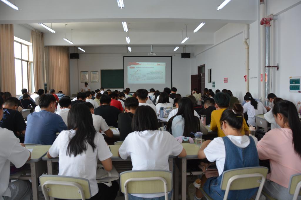 党委书记朱连勇为全院师生党员讲述“延安精神永放光芒”为题的专题党课。共计100余人听讲,在工科实训楼南513举行。