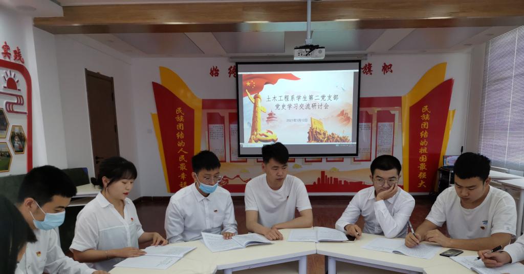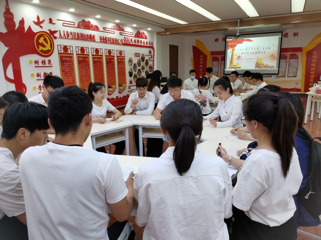 土木工程系学生第二党支部于西七二楼胡杨精神育人基地开展学党史交流研讨会。土木工程系学生第二党支部书记王婷婷带领30名学生党员参加此次研讨会。