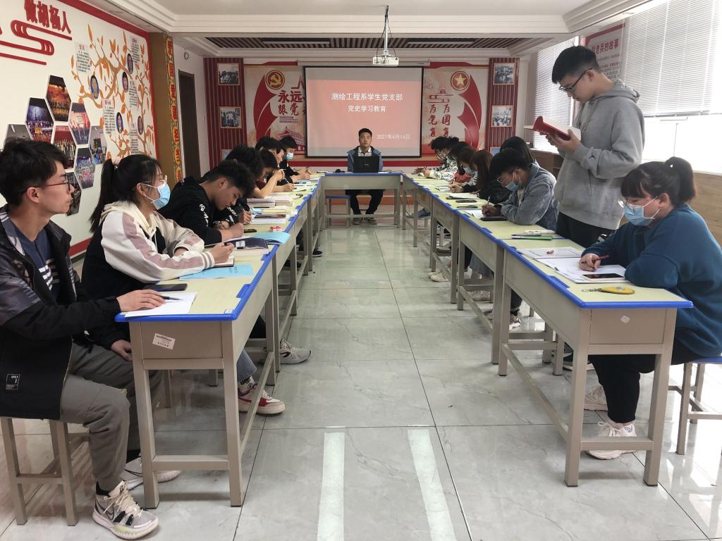 2021年正值是中国共产党成立一百周年,为进一步学好党的历史这一本教科书,这一门必修课,党史学习,重在力行。4月14日下午,测绘工程系学生党支部开展党史学习教育会议,支部全体党员、发展对象参加。会议在西七二楼“胡杨精神育人基地”开展。测绘工程系学生党支部书记余伟主持会议。