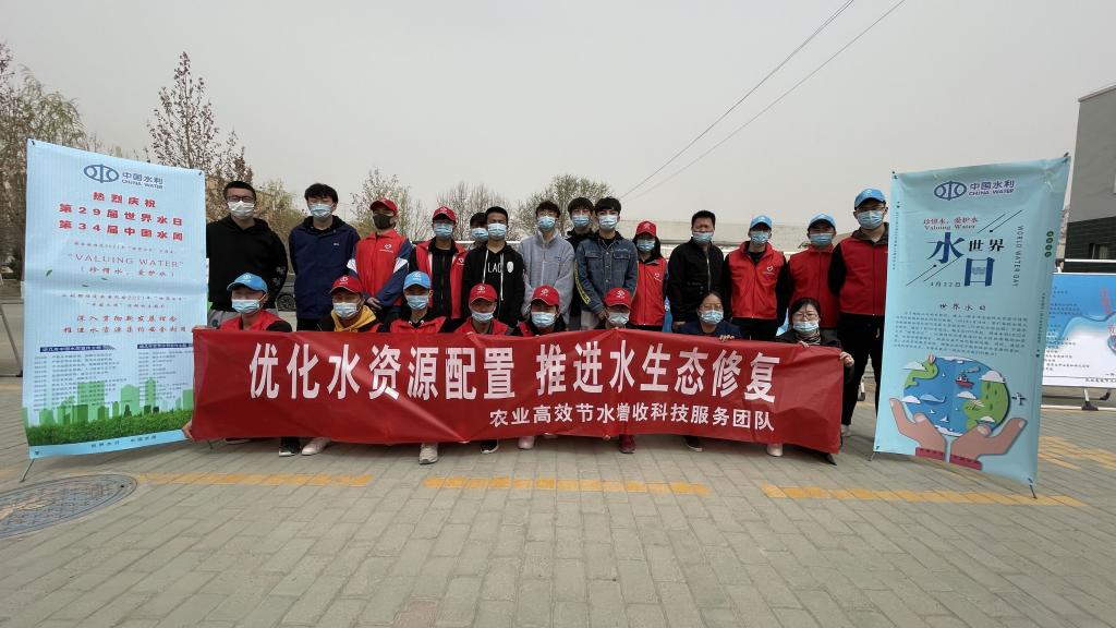 农业高效节水增收科技服务团队在西区第四食堂门口开展了以“珍惜水 爱护水”、“深入贯彻新发展理念,推进水资源集约安全利用”为主题的宣传活动。