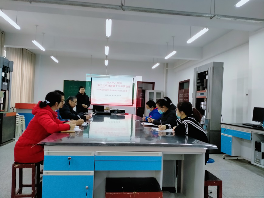 2020年11月25日下午16:30,测绘工程系教工党支部全体党员在工科实训大楼北115开展第三次中央新疆座谈会精神宣讲,测绘工程系教工党支部书记张新东主持并作宣讲,测绘工程系教工党支部在校党员参加了会议。