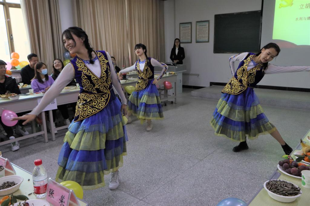 随后,活动进入到了表演和游戏环节。杨梦瑶、阿依哈娜提·加尔肯、谭娜三位同学柔婉袅娜的民族舞蹈,将全场的目光聚焦于教室中央;一首《后来》勾起了全体团学干部的离愁别绪,大家纷纷跟唱;“明七暗七”、“正话反说”等游戏也让全场气氛格外愉悦;辅导员余伟老师带来的《追梦赤子心》将此次活动推向了高潮。活动最后,新一届团学干部为老一届团学干部送上惊喜——“送给老壳子们的视频”,欢声笑语充满了整个503教室,交流分享会也在温暖和感动中落下帷幕。