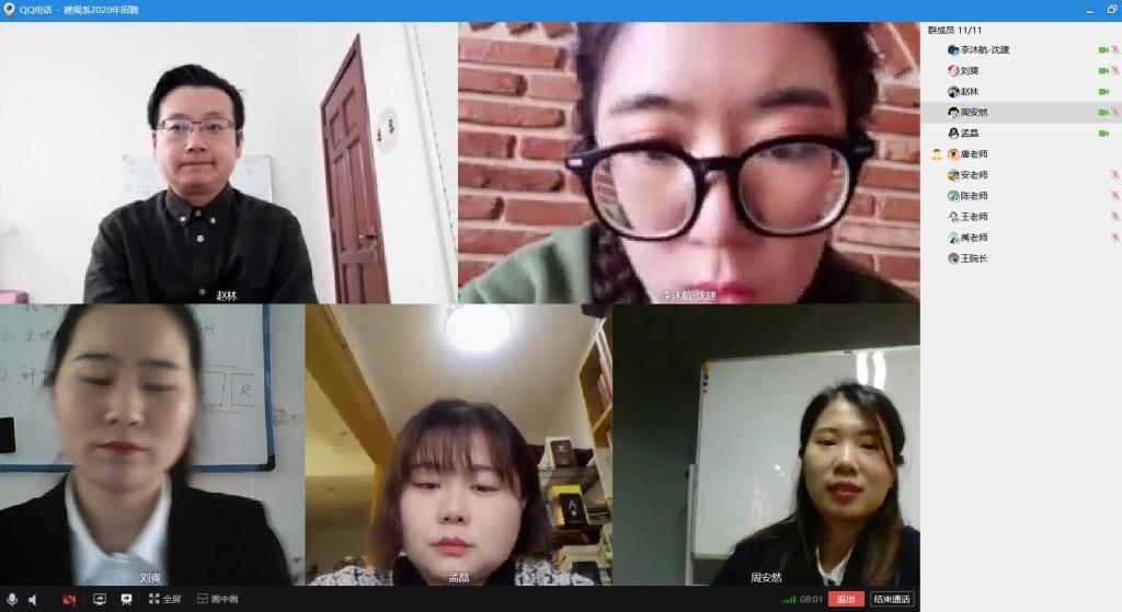 面向内地公开招聘教师简章》和《关于做好2020年教师公开招聘工作的补充通知》工作安排,为有效减少人员聚集,保障公开招聘应聘人员及工作人员安全和健康,做好疫情防控期间教师招聘工作,建筑规划系于2020年3月28日上午10点整,对第一批通过初审的5名应聘者采取线上QQ视频的方式进行面试(试讲)工作。