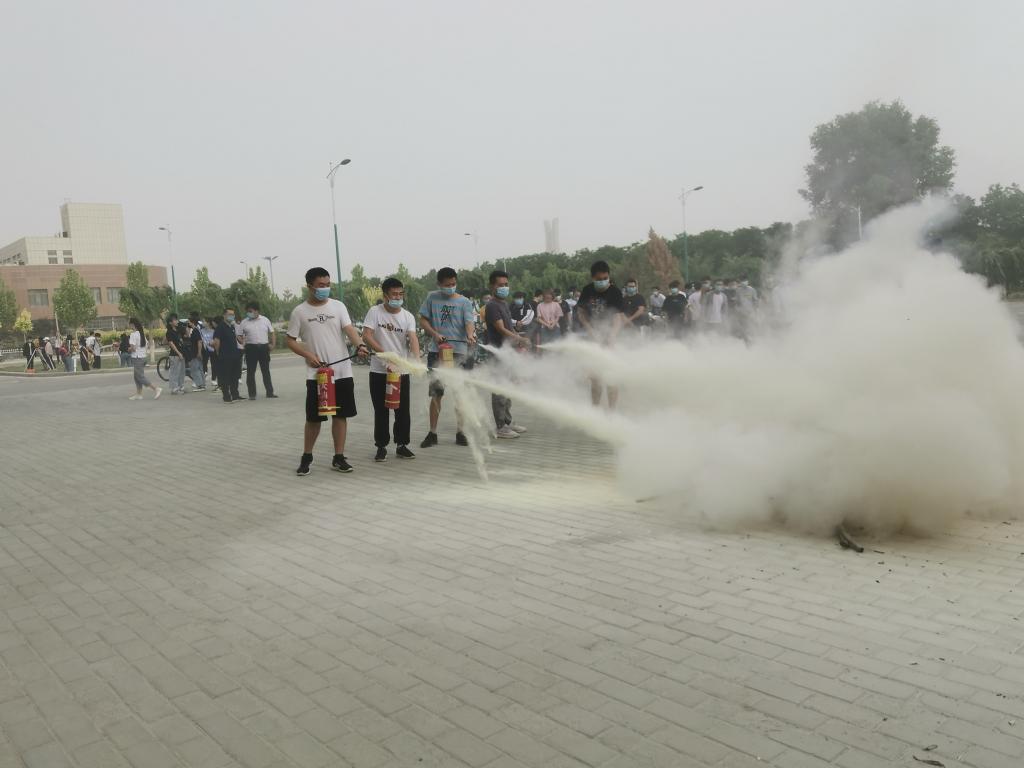 消防演练中,楼宇值班员接到报告后立即赶往现场查看并拨打4682110报告指挥部、报告楼栋长,指挥部接报后,消防科长、负责消防安全的保卫领导迅速赶到了现场开展扑救工作并迅速组织管理人员引导楼内师生进行疏散,待师生撤离到安全区域后,由阿拉尔消防大队队员向师生讲解灭火器的使用方法并组织师生现场操作。