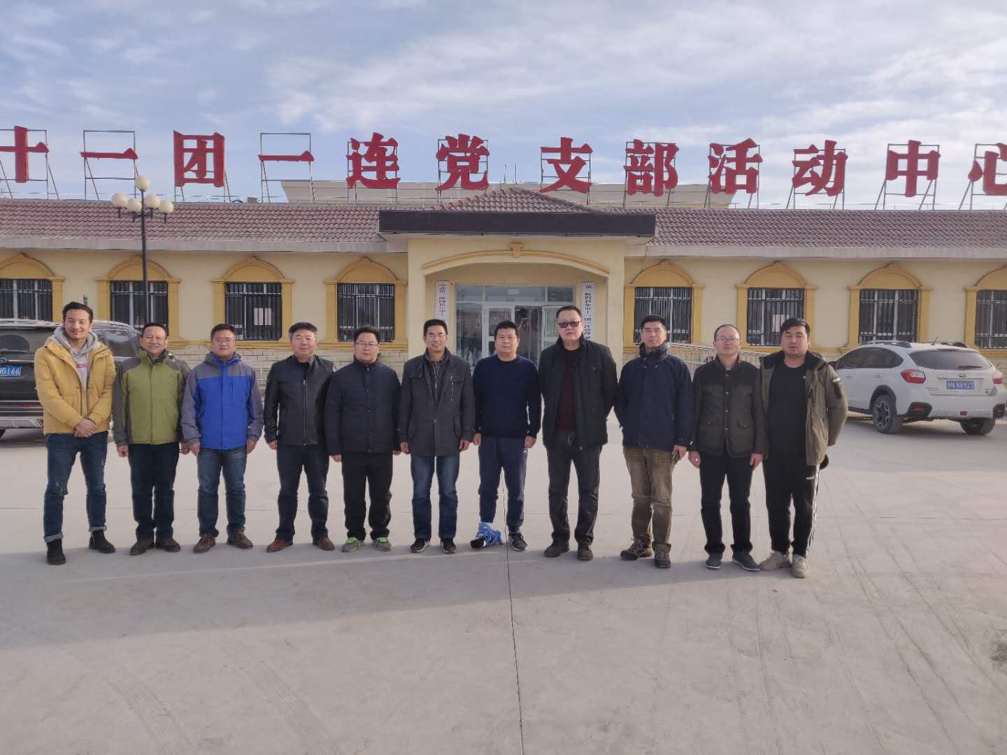 熊仁次一行分别走访了三个工作队,向工作队员一一询问了生活和工作情况,对队员们积极向上的工作面貌给予赞扬,并代表学院党委和全院教职工向在这里坚守岗位不能回家过节的队员们表达感谢,感谢他们投身一线,为兵团基础连队建设做出贡献。贺兴宏作为今年刚从6连工作队回到学校的前工作队队长,感慨良多,他说:“三年的工作队,一辈子的乡土情,看到昔日的队友,我仿佛又回到这里,想起了我们一起为群众办实事的点点滴滴!”工作队对水建院领导的关怀表达感谢,并纷纷表示,虽然每逢佳节倍思亲,但和乡亲一起过新年也能享受不一样的新年气氛。慰问结束后,领导和队员们合影留念。