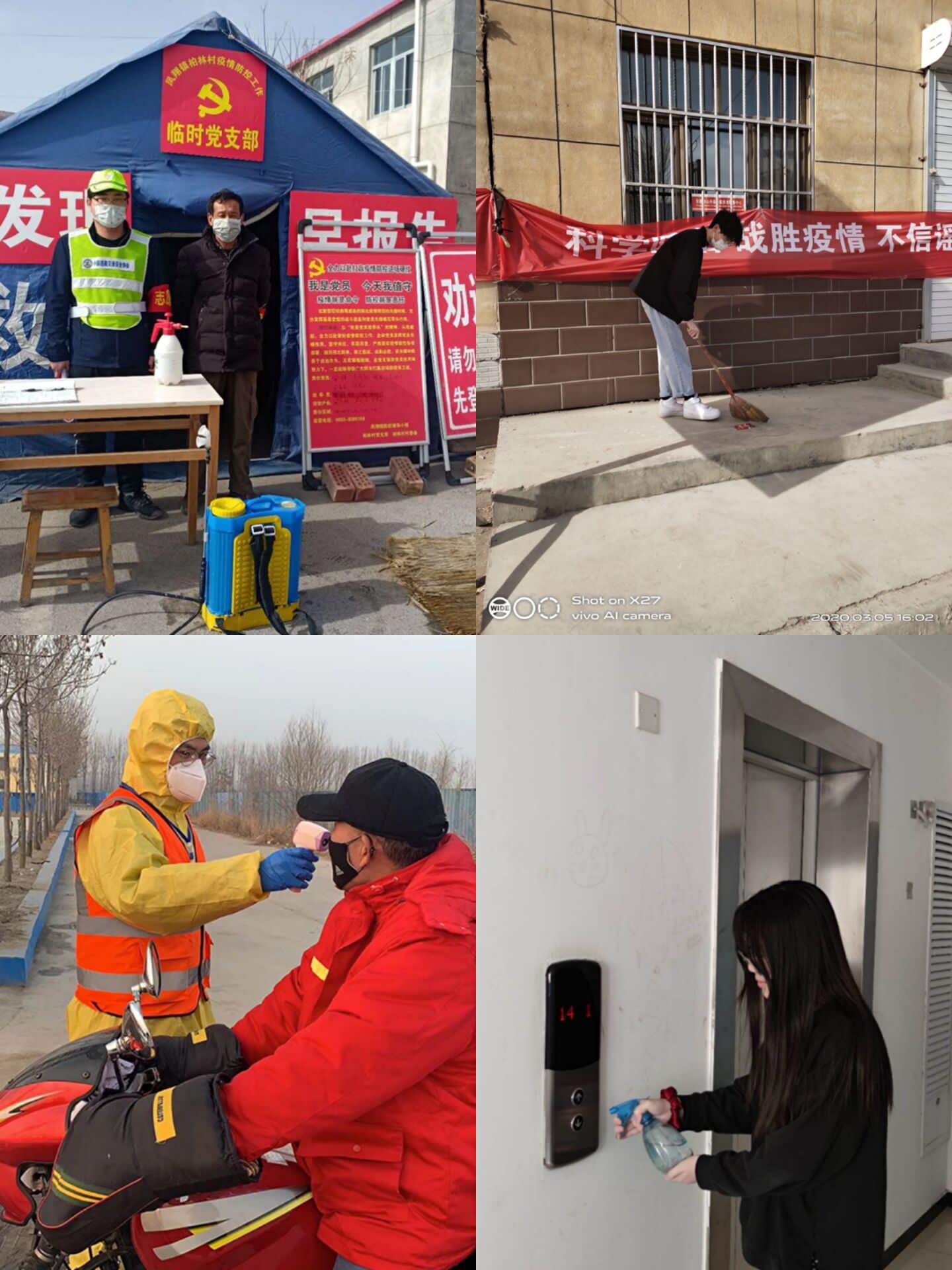 与此同时,学院号召党员及共青团员积极学雷锋志愿服务活动,部分班级组织学生开展了打扫社区卫生活动,部分党员依然坚守在疫情防控志愿服务中。建工21班的史雨奇说:“在国家危难面前,在国家需要我们的时候,只有党员不松劲,群众才有信心,国家才会有希望,作为五楼自拍