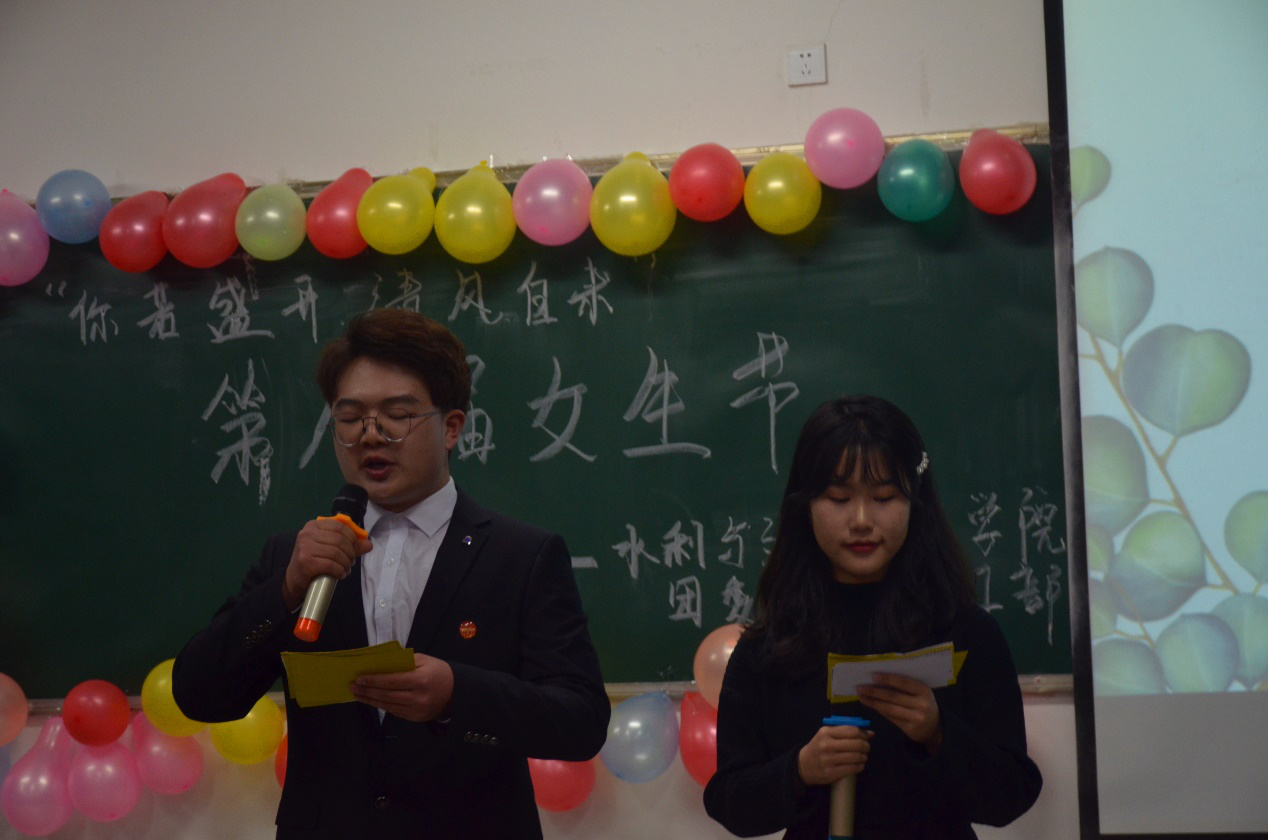 于逸夫楼阶梯教室11,开展“你若盛开,清风自来”第八届女生节。水建院辅导员李丹丹、主席团书记处成员及学院女生参加此次活动。