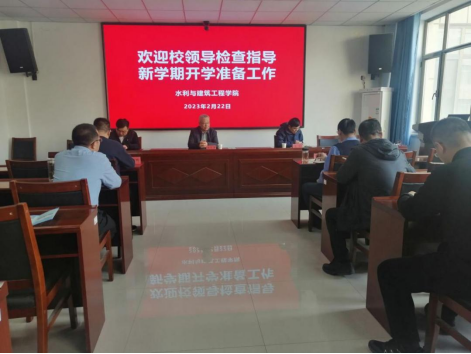 检查指导新学期开学准备工作。资产管理处处长龚平、发展规划处副处长章勇陪同调研。水建学院党委书记朱连勇、院长王兴鹏、党委副书记李新、副院长杨保存、黄维雄、孙三民参加此次调研会议并进行相关汇报。