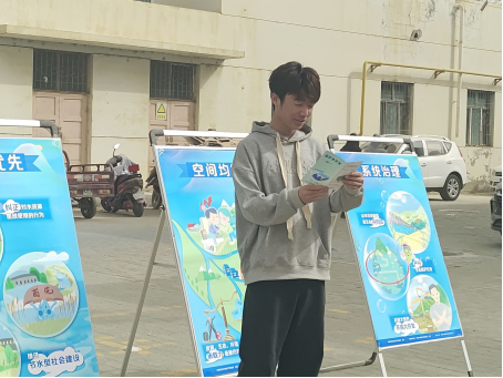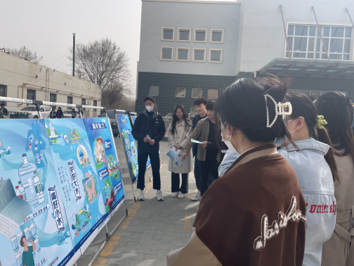 活动开始前,参与宣传的同学布置展板并分发节水护水宣传手册。活动过程中,同学们为大家介绍水资源的重要性,包括我国目前存在的水资源问题以及如何有效保护水资源。得到在场同学的积极响应。