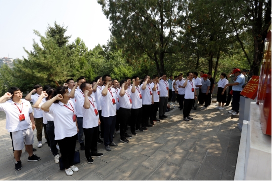 大家乘车来到了宝塔山,讲解员为大家讲解了宝塔的历史,党中央和中央红军1935年长征到达陕北后,宝塔逐渐成为革命圣地延安的标志和象征。听完宝塔山的光辉历史后,大家举行了庄严的重温入党誓词仪式。