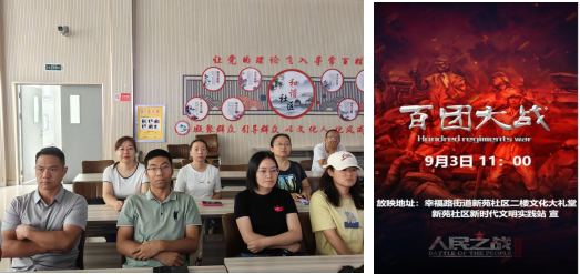 9月3日,中国人民抗日战争胜利纪念日,在这特殊的日子里,测绘工程系教工党支部于上午11:00在幸福路社区新苑社区二楼文化实践站与广大居民朋友们一起观看了爱国电影《百团大战》,令党员们感触颇深。