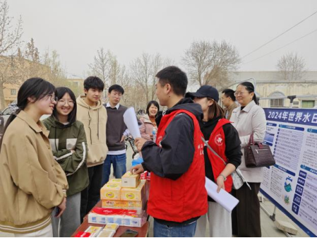 四食堂前开展有奖竞答活动,普及水利知识,提高大学生对水资源问题的认识和关注度,增强爱水、节水、惜水、护水的政治自觉、思想自觉和行动自觉。