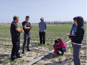 管瑶教授与二十二团九连职工代表对今年连队的发展现状、种植结构、病虫害防治、肥料的施用等进行深入地讨论,明确了科技帮扶需求。番茄和辣椒是二十二团九连的支柱产业,九连地温低,为保证辣椒和番茄的成活率,团队对滴灌带的铺设和滴头流量的设置进行现场指导。