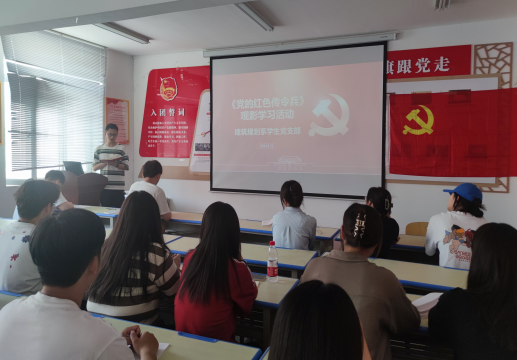 为提高同学们对中国共产党的认识,勉励同学们不忘初心,牢记历史。5月22日下午,建筑规划系学生党支部在西十四二楼开展《党的红色传令兵》观影学习活动。学生党支部副书记罗雨薇主持。