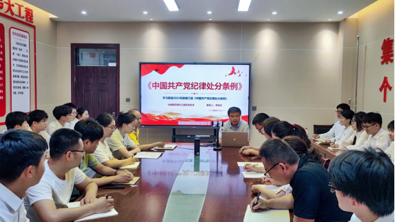 为进一步学深悟透习近平总书记关于党的自我革命的重要思想,引导党员切实加强经常性纪律教育,持续深入学习《中国共产党纪律处分条例》,准确把握开展党纪学习教育的重大意义和目标要求,7月2日,环境与工程系党总支在工科实训大楼三号会议室专题学习新修订的《中国共产党纪律处分条例》(以下简称《条例》)。党总支书记李发永领学,全体党员同志参加了学习。