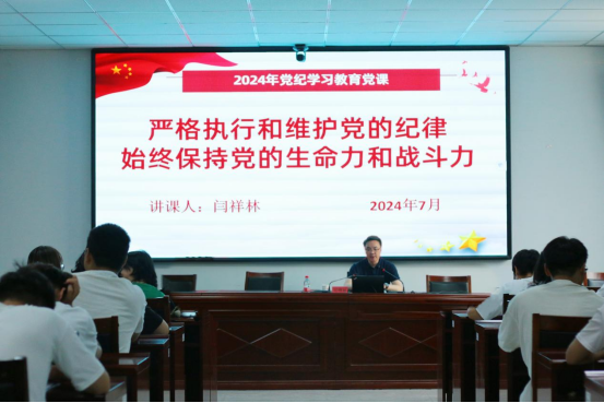 为深入学习贯彻落实习近平总书记关于党纪学习教育的重要讲话和重要指示精神,推动学院党纪学习教育走深走实,7月4日,校党委副书记、校长闫祥林以深厚的理论功底、权威的政策解读、扎实的教育实践,在工训楼一号会议室,为师生党员及入党积极分子代表讲授《严格执行和维护党的纪律,始终保持党的生命力和战斗力》生动深刻的党纪学习教育专题党课。水利工程系党总支书记孙海燕主持。