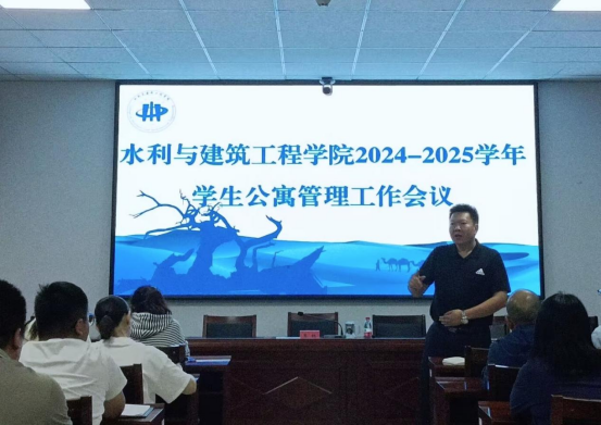 于工科楼一号会议室召开2024-2025学年学生公寓管理工作会议,会议由学院党委副书记李林主持,全体班主任、辅导员参会。