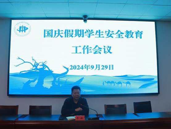 于工科实训楼一号会议室召开国庆假期学生安全教育工作会议。会议由学院党委副书记李林主持,全体班主任、辅导员参会。
