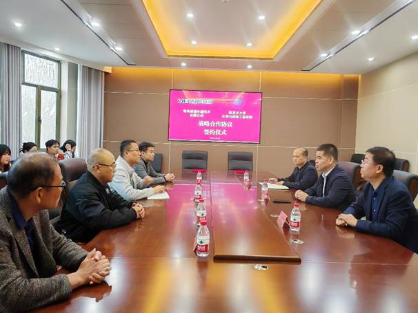 与青岛盛瀚色谱技术有限公司在水建院工科实训大楼二号会议室举行院企战略合作协议签约仪式。本次仪式由水建院副院长黄维雄主持,青岛盛瀚色谱技术有限公司市场中心副总监田海峰、新疆销售经理米蒙、售后工程师兰振纲,浙江大学银铃教师朱岩教授,水建院院长王兴鹏、副院长杨保存、环境与市政工程系书记(主任)李发永,环境与市政工程系师生代表出席了会议。