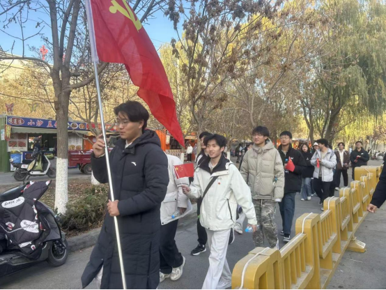 活动开始前,从集合点出发前往纪念馆的途前,支部书记罗雨薇同志发表示:“今天我们特意选择步行前往三五九旅纪念馆,就是想让大家用最朴素的方式,接一接革命先辈的‘地气’,希望大家通过此次活动,重温革命岁月,感悟初心使命”。随后,支部同志沿着城市道路有序步行,虽无长征途中的崇山峻岭与艰难险阻,但大家特意放慢脚步,以“模拟行军”的心态感受行走的意义。