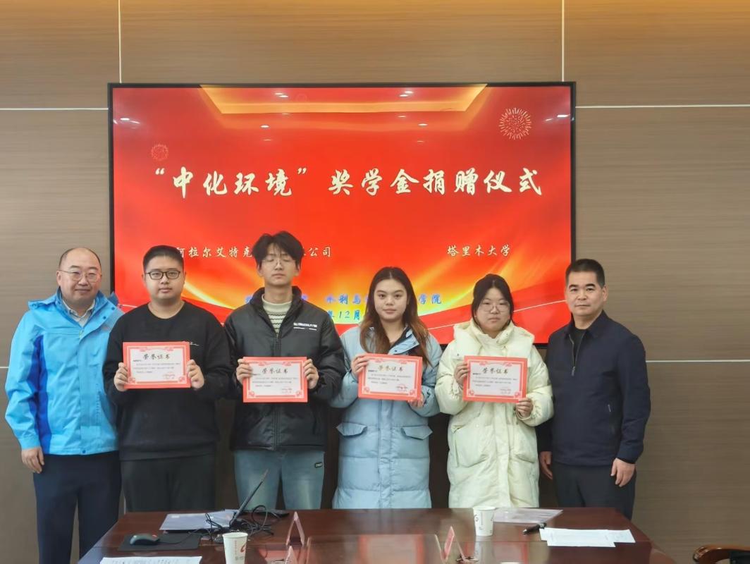 2025年12月26日上午11时,“中化环境”奖学金捐赠仪式在五楼自拍