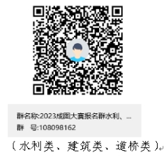 3、已报名的学生以实名“班级姓名”(如“测绘2021级1班张三”)按参赛类别分别加入“2023成图大赛报名群水利、建筑、道桥类”或“机电院2023年成图大赛”QQ群,比赛等相关信息将通过QQ群发布,请及时关注。