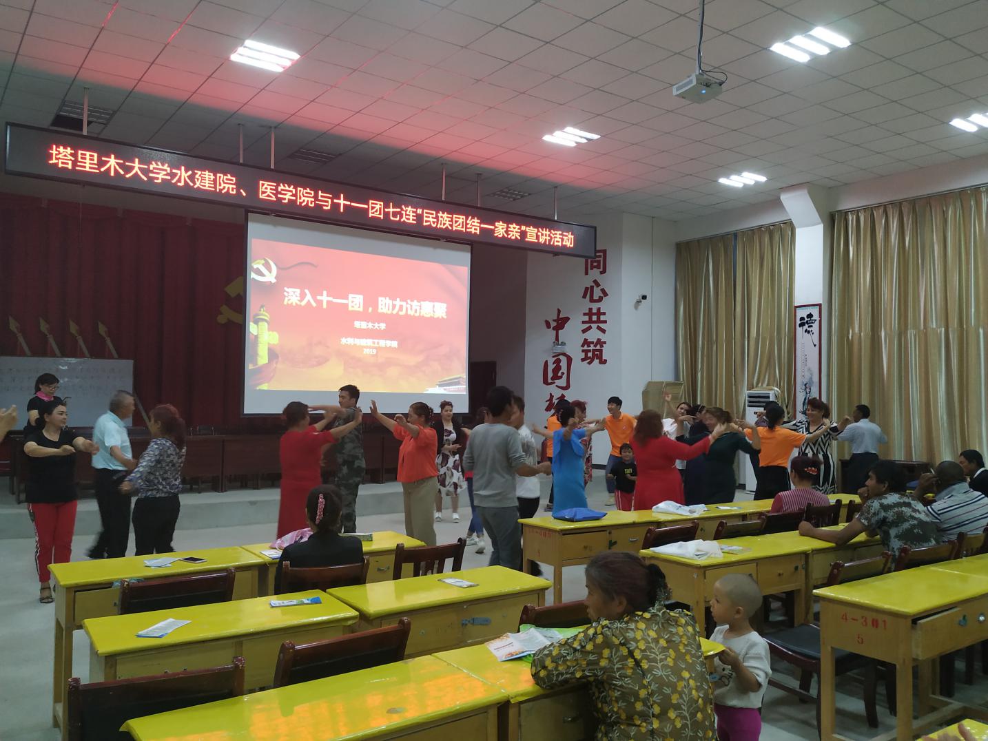 宣讲结束后举行了歌舞活动,让全民参与进来。欢快的民族音乐让每一个人都有着想跳舞的心,大家欢声笑语中度过了充实的一个活动,也为访惠聚工作中的文化建设起到一定的帮助作用。
